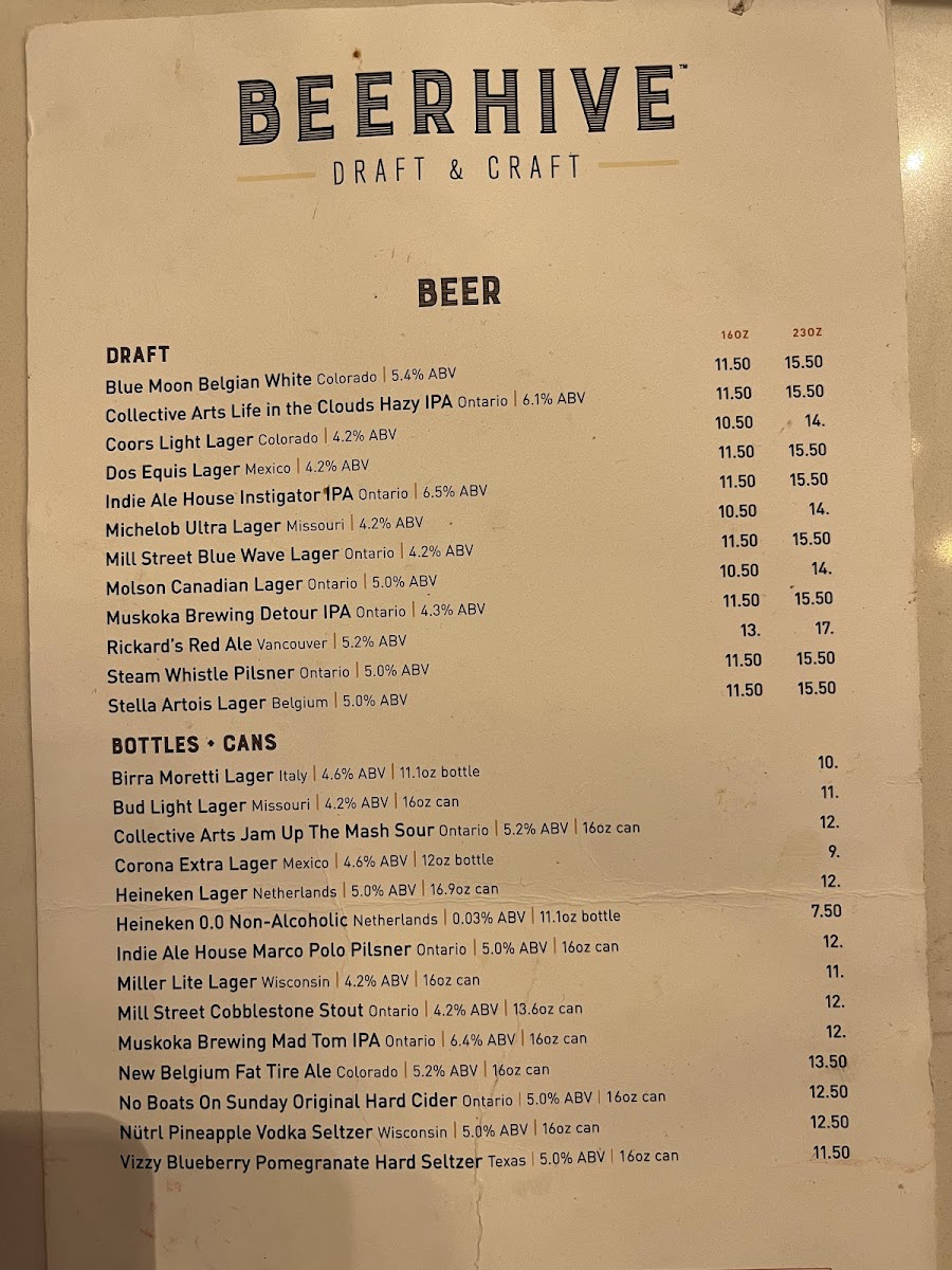The menu at Beerhive offers a balanced selection of casual bites and comforting drinks that suit the relaxed yet lively atmosphere of an airport setting. Whether you're unwinding before a flight or grabbing a quick meal between connections, you'll find a variety of approachable options designed to satisfy without fuss.